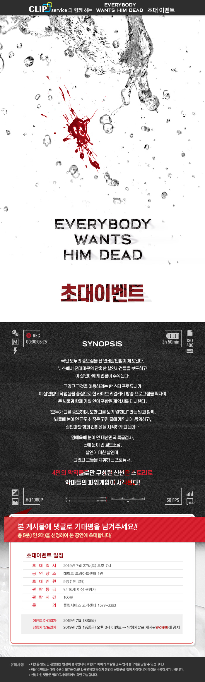 연극 <Everybody Wants Him Dead> 초대이벤트!