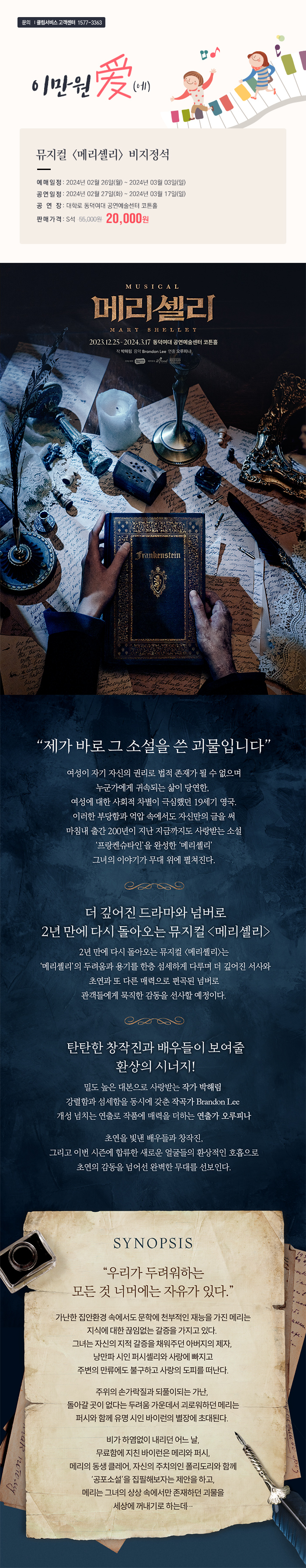 뮤지컬 <메리셸리>비지정석 이만원愛